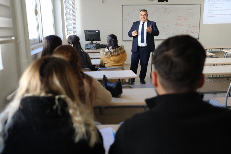 Kamu personel rejiminin yapısı hakkında öğrencilere kapsamlı bilgiler aktarılırken, üniversite mezunlarının kamuya giriş süreçleri, kariyer planlaması ve mesleki yeterliliklerin önemi üzerinde duruldu.
